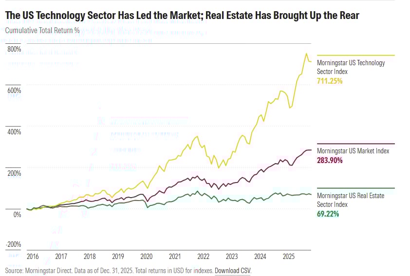 Real estate has been a laggard in terms of market returns for the last 10 years.