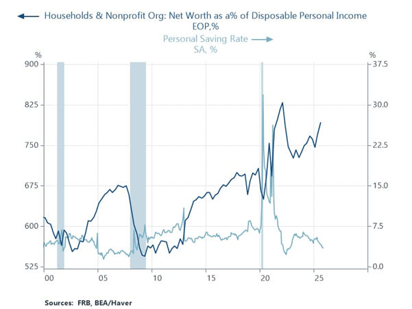 Savings is trending down while assets are going up.People are allowing their equity portfolios to do the heavy lifting.That's great until there's a downturn.