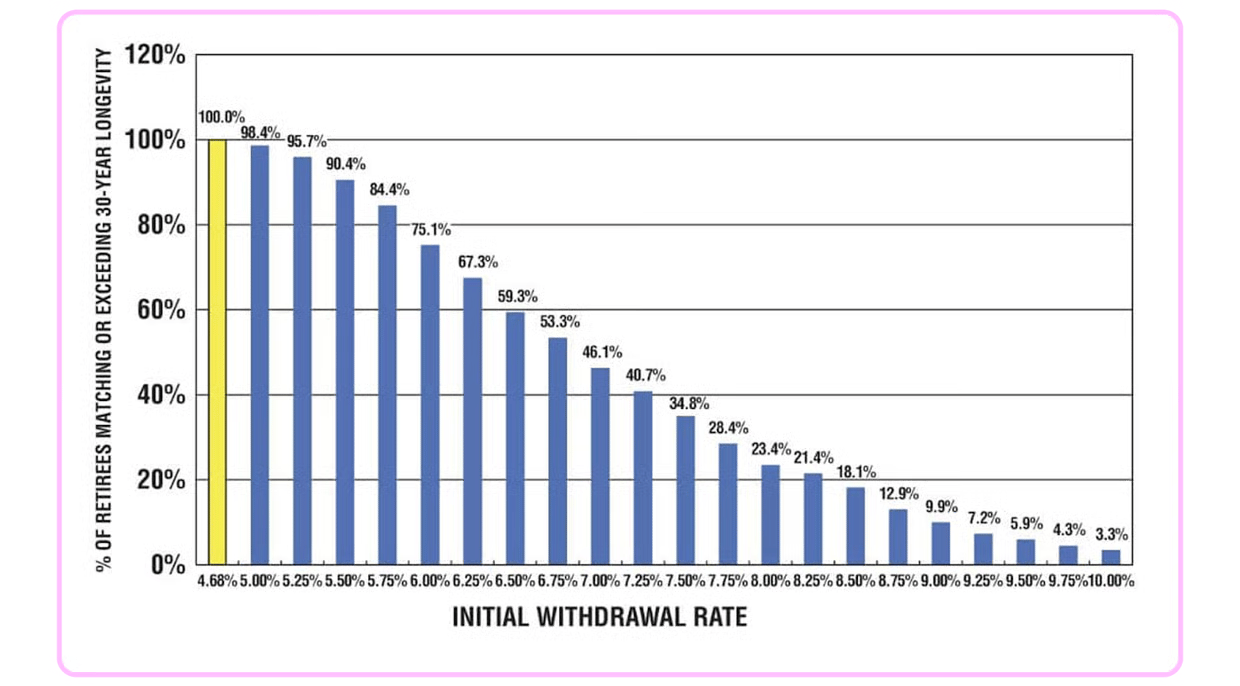 Hey, good news! The financial planning guru, Bill Bengen, who gave us the famous 4% rule, just updated his math. Now, after checking the data up to 2022 and using more types of investments, he says a 5% withdrawal rate is actually safe—it’s got a 98.4% success rate over 30 years!